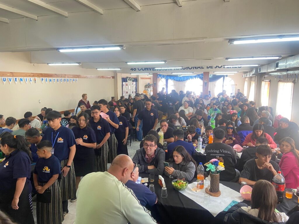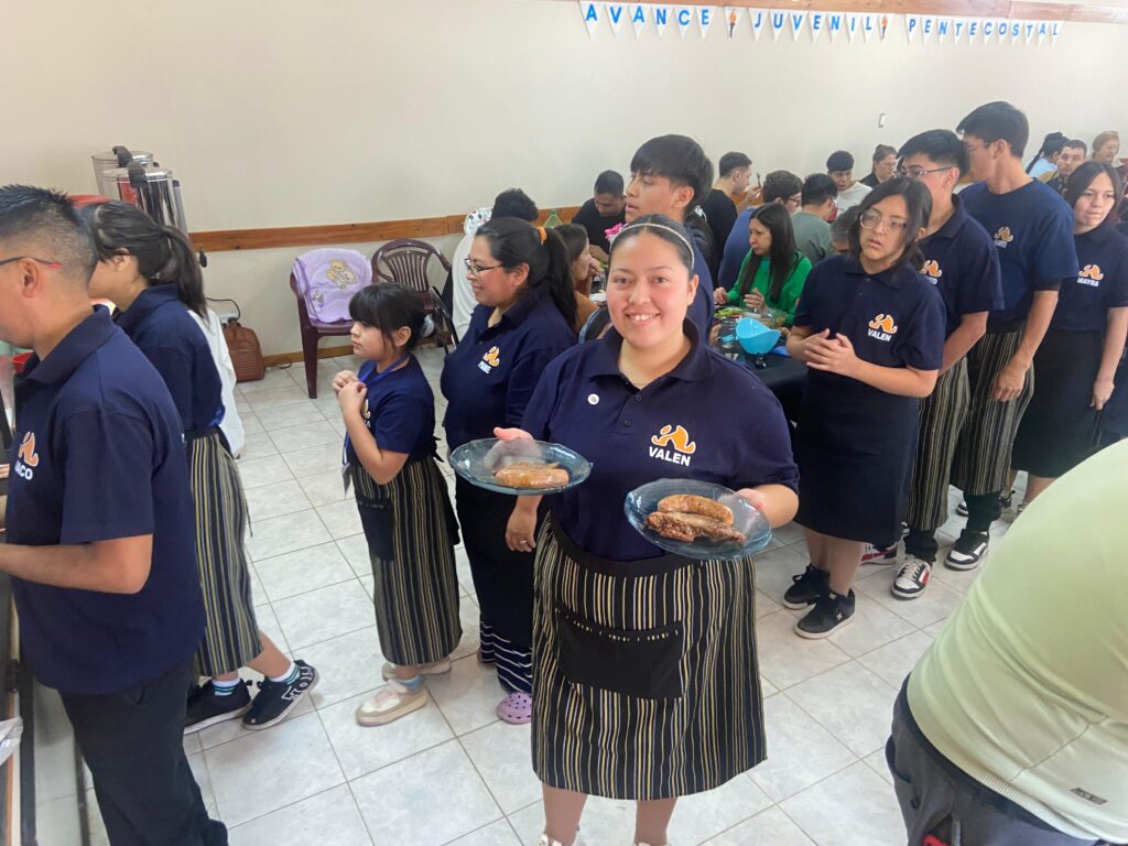 Llegando la hora del almuerzo todos retornaron al espacio del comedor de la iglesia para disfrutar de un rico asado que tenían listo los hermanos