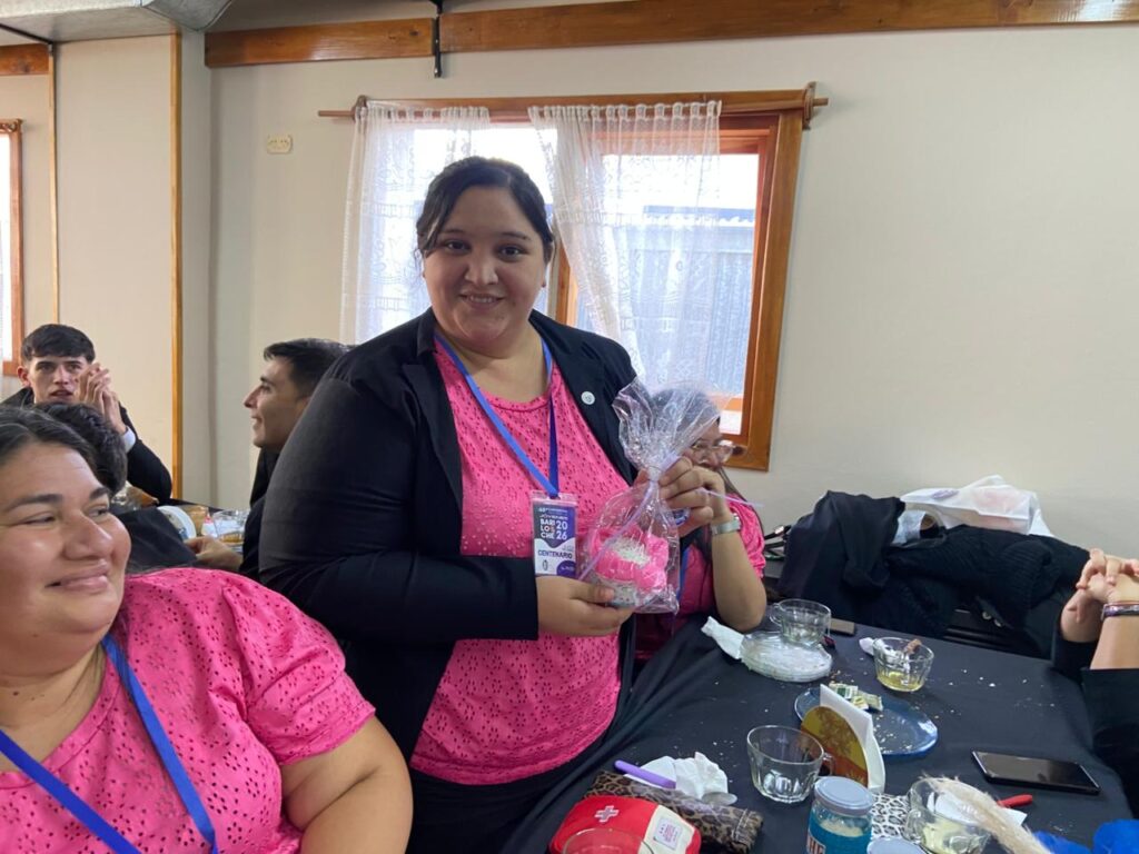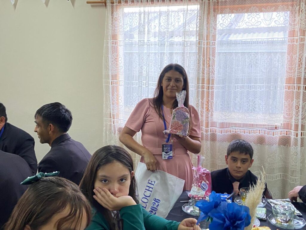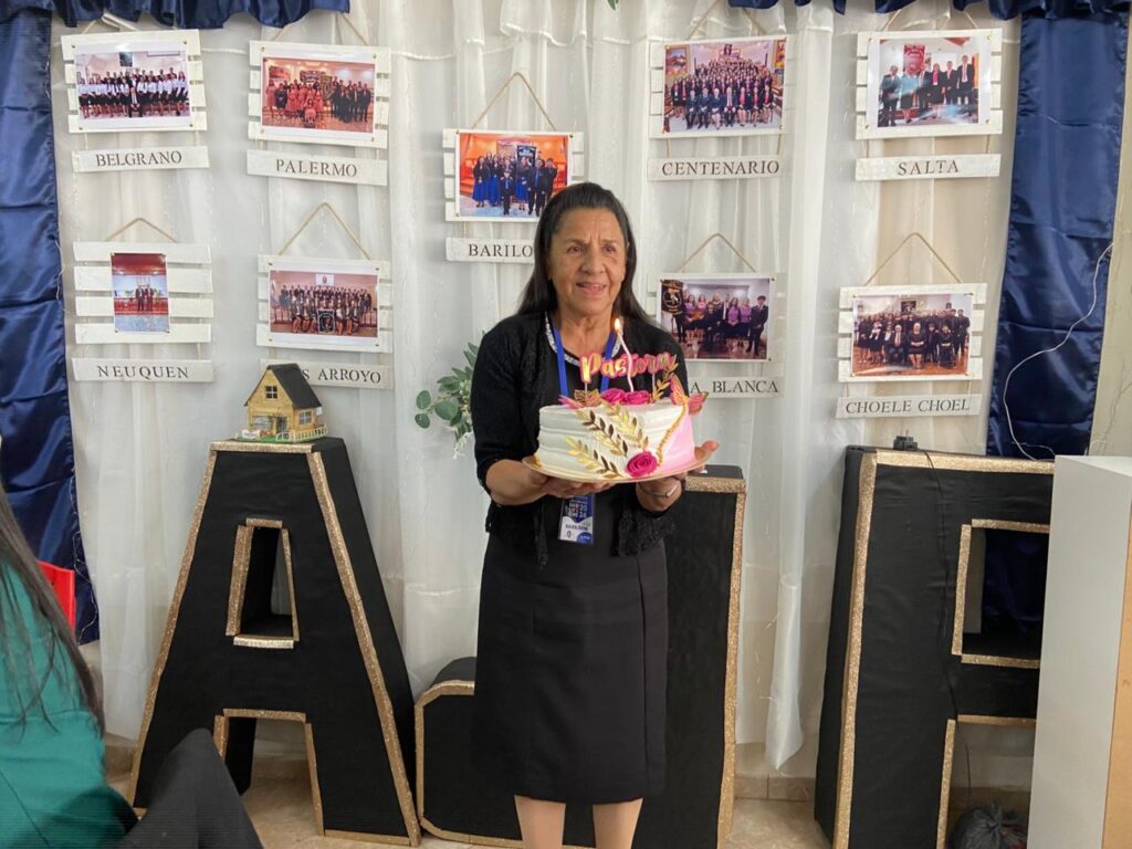 Durante la merienda, los hermanos sorprendieron a la Pastora Edith Figueroa con una torta por su cumpleaños.