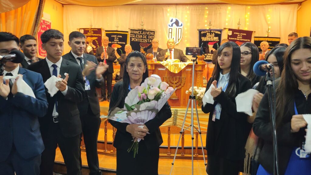 Al término de su palabra, la iglesia sede alabó al Señor con gratitud a Dios por permitirles llevar adelante este evento y lograr victoria. Además los hermanos honraron con un ramo de flores a la Pastora Edith, por cumplir un año más de vida.