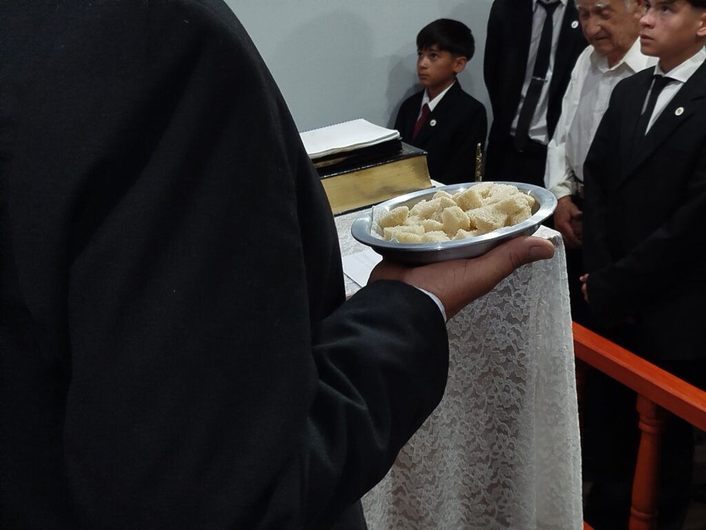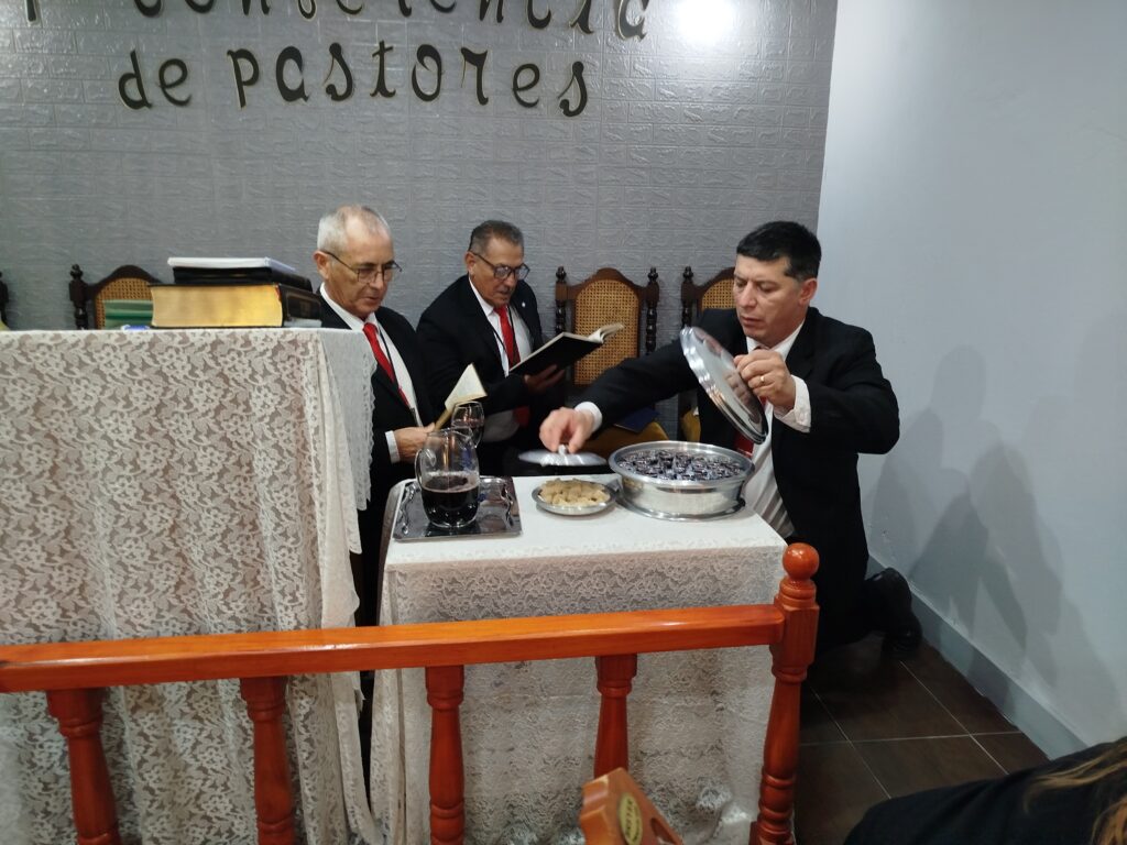 La santa cena fue realizada por el Pastor Walter Ojeda de la iglesia de Bahía Blanca, el Pastor Juan Sosa de la iglesia de Salta,y el Pastor Jorge Hernandez de la iglesia de Neuquén.
