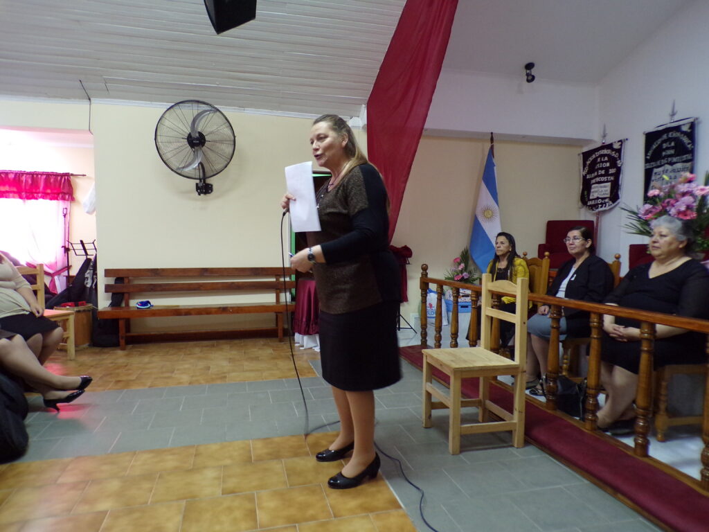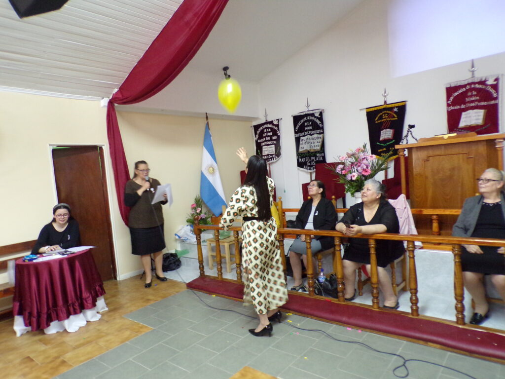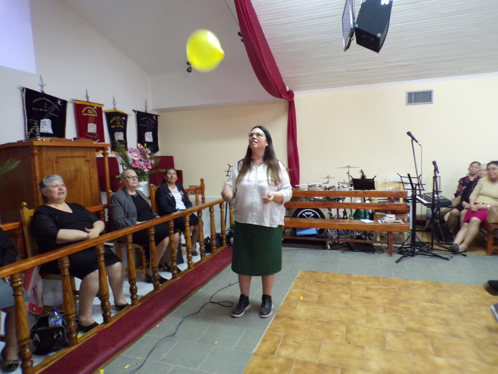 Por la tarde, bajo el lema de «¡Mujeres virtuosas alegres!»; la pastora Claudia de Bahía Blanca dio un devocional en Salmos 118:24 que dio lugar a una tarde de distensión y juegos dirigidos por ella y la hermana Daniela Andaur de Centenario, quienes también contaron con la ayuda de la hermana Agustina Ojeda de la iglesia de Bahía Blanca como secretaria.