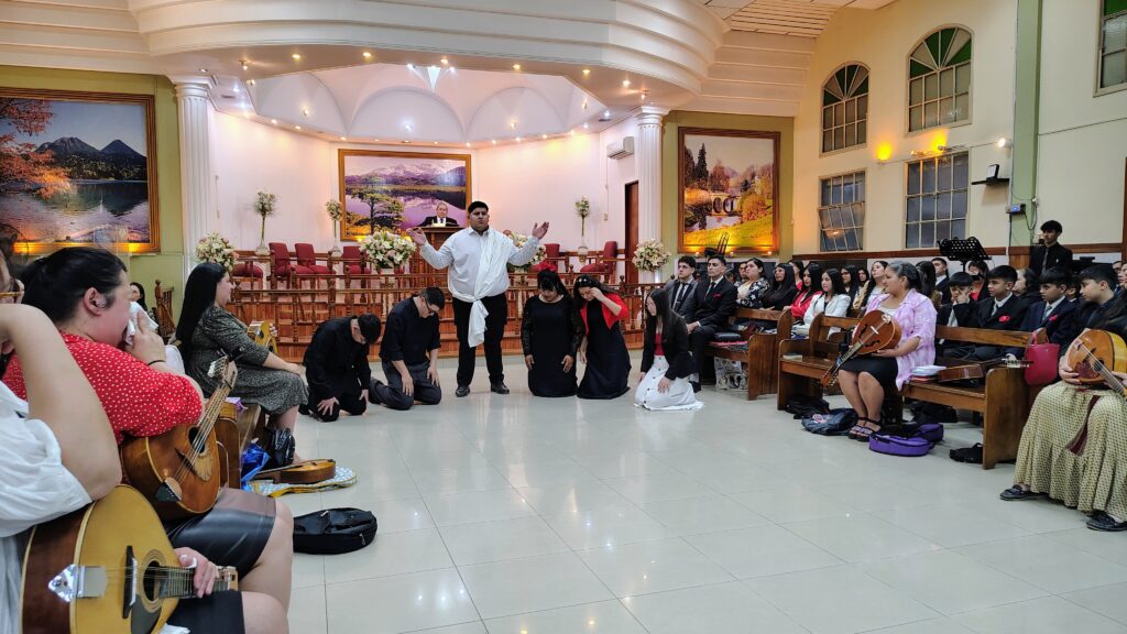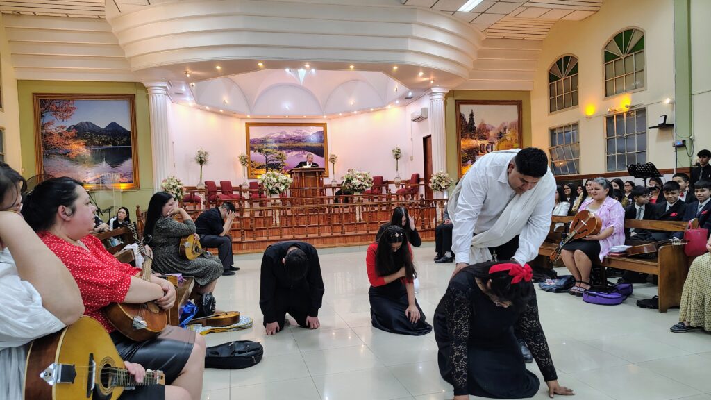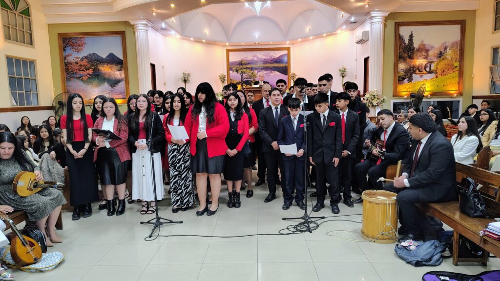 Ambos grupos entonaron una alabanza titulada: «La Familia de Dios». Te compartimos la copia de dicha alabanza para que puedas meditar en ella y agradecer a Dios por ser parte de esta familia.