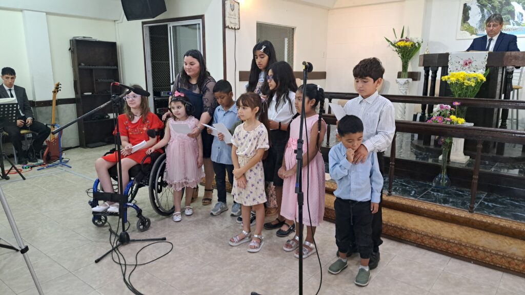Uno de los momentos más memorables fue la proyección de un video conmemorativo. En él, pudimos recorrer los orígenes del Pastor Luis y su incansable camino en la obra del Señor, recordando cómo su fidelidad ha dejado huella en tantas vidas. Además, la frescura de los más pequeños junto al hermano Walter Roldán llenó el templo de alegría con alabanzas dedicadas a la protección divina.