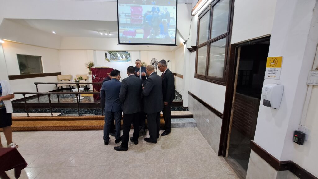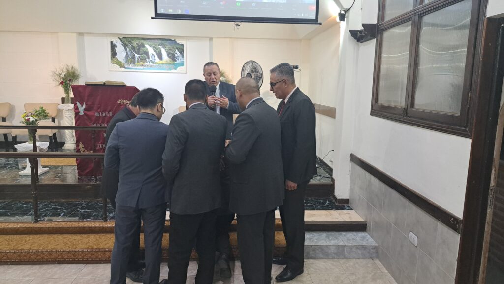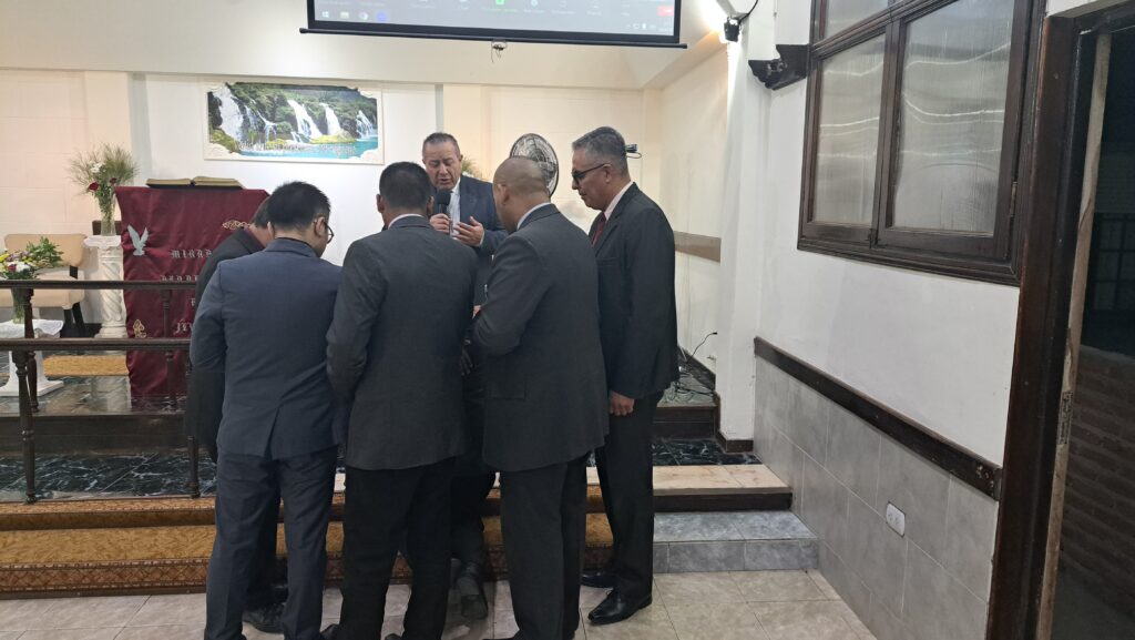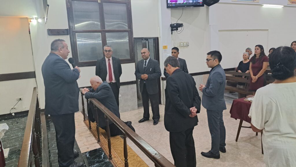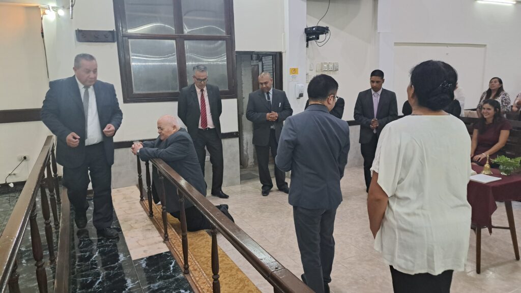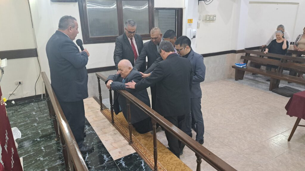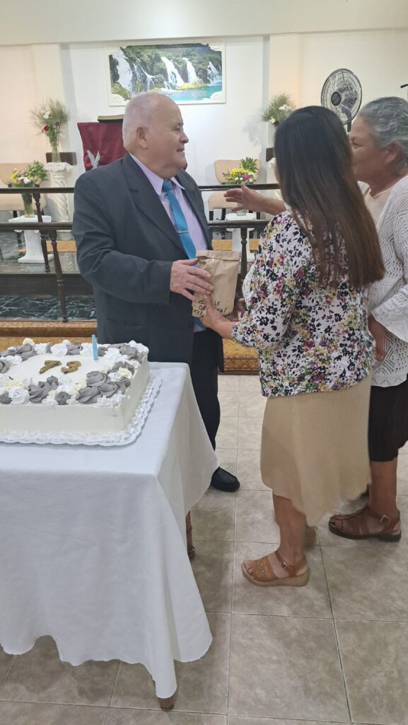 Durante la reunión, fue ungido por el grupo de oficiales y predicadores. Luego, cada familia pasó al frente a saludarlo con un abrazo y se le entregaron algunos presentes.