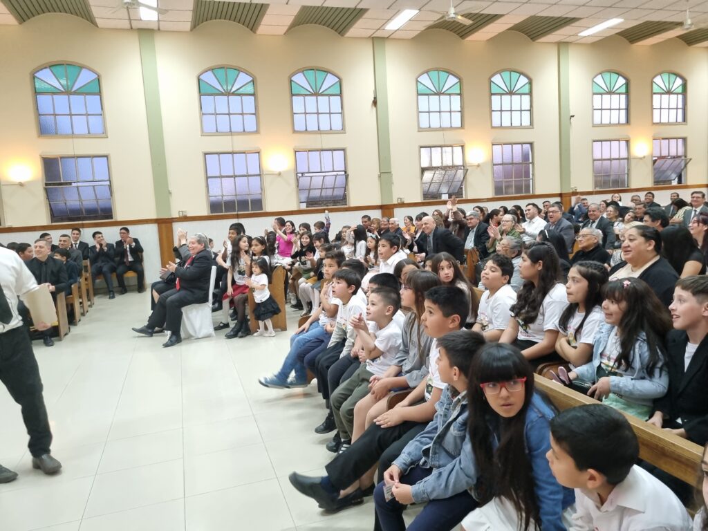 Dieron inicio la clase de Niños de la Escuela Dominical cantando «Con Cristo en la familia que hogar feliz», ya dándonos una premisa sobre el objetivo de celebrar este día.