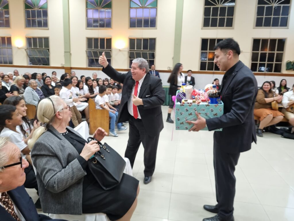 Continuaron con el programa, se realizo un juego de preguntas y respuesta con la hermandad, de la mano de los hermanos Martin Cardozo y Agostina Contreras, se dieron premios y se realizaron sorteos de canastas de productos no perecederos donadas por las clases de la escuela dominical de la iglesia.